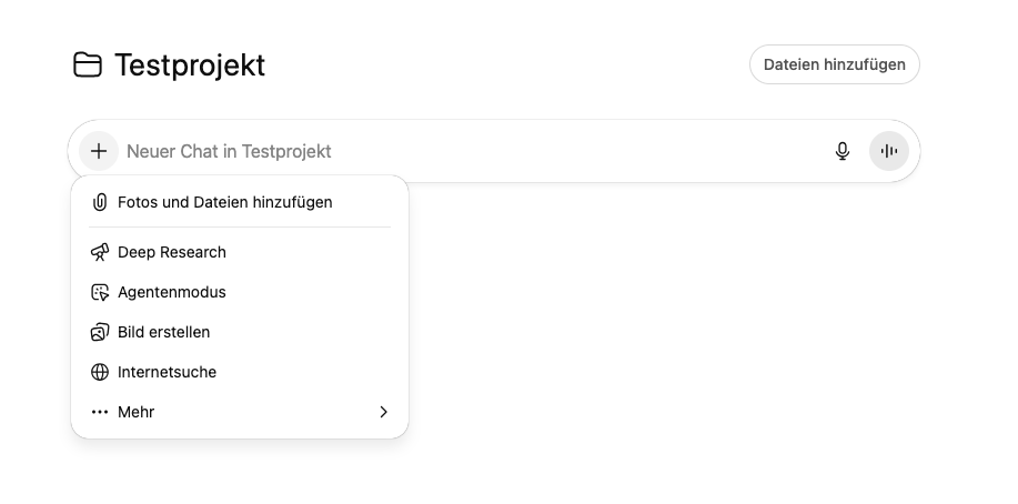 In dem eben angelegtem Projekt gibst du jetzt folgende Befehle ein und musst darauf achten, dass der Deep Research Modus eingeschaltet ist und die Befehle Nacheinander eingegeben werden. Warte hier dann unbedingt die Zwischenfragen ab, bevor du fortfährst: